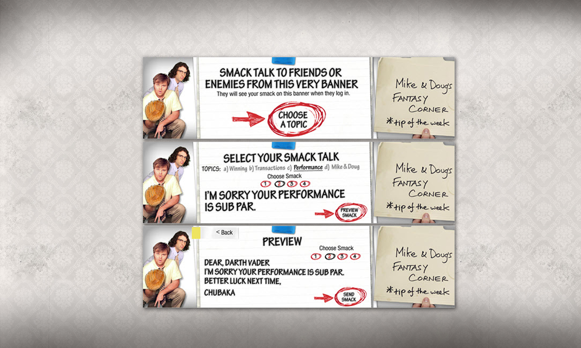 Mike & Doug’s Fantasy Corner was a branded content campaign created by freecreditscore.com to support their sponsorship of Yahoo Fantasy Sports. The campaign launch coincided with baseball season and featured two fantasy baseball fanatics, Mike and Doug, who film a fantasy baseball bog from their office cubicle. Each week Mike and Doug offer a tip on how to enjoy fantasy sports at work and not get caught. The campaign was a huge success and earned 11 awards for creative excellence.